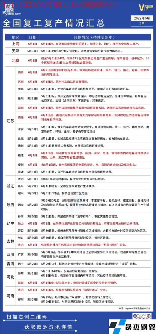 免責聲明:本網站(山東聊城晟杰無縫鋼管廠www.www-86604.com)刊載的“疫情影響丨全國復工復產情況匯總(6月2日)”等均源于網絡,版權歸原作者所有,且僅代表原作者觀點,本文所載信息僅供參考。轉載僅為學習與交流之目的,如無意中侵犯您的合法權益,請及時聯系刪除。本網站刊登此篇文章并不意味著本站贊同其觀點或證實其內容的真實性,我們不對其科學性、嚴肅性等作任何形式的保證。如果侵犯了您的版權,請盡快聯系我們予以撤銷,謝謝合作!