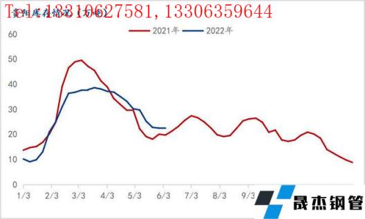 5月中下旬以來(lái),貴州地區(qū)進(jìn)入雨季,強(qiáng)降水天氣頻發(fā),平均降水量較常年同期偏多18.2%,江河來(lái)水量較多年平均偏多25%。雨季來(lái)臨,下游施工受限,運(yùn)輸受阻,貴陽(yáng)主流庫(kù)房開單量下滑明顯,5月份貴陽(yáng)市場(chǎng)主流庫(kù)房日均開單量6680噸,較4月份日均開單量減少967噸,降幅達(dá)12.65%,疊加高考停工影響,今日貴陽(yáng)主流庫(kù)房開單量?jī)H4500噸。較2021年5月份日均開單量減少4546噸,降幅達(dá)40.49%,僅達(dá)去年六成。雨季需求受限,貴陽(yáng)市場(chǎng)去庫(kù)速度受到影響,截至6月5日,貴陽(yáng)主流庫(kù)房建筑厚壁無(wú)縫鋼管庫(kù)存22.6萬(wàn)噸,較上周減少0.37萬(wàn)噸,降幅1.61%,較去年同期高出2.86萬(wàn)噸,增幅達(dá)14.48%。綜合來(lái)看,雨季來(lái)臨,貴陽(yáng)市場(chǎng)建筑厚壁無(wú)縫鋼管需求明顯下滑,去庫(kù)速度放緩。