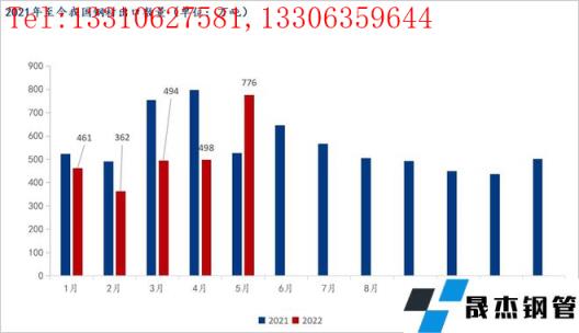 前言:海關(guān)總署6月9日數(shù)據(jù)顯示,2022年5月中國出口厚壁無縫鋼管775.9萬噸,較上月增加278.2萬噸,同比增長47.2%,環(huán)比大幅增長56.89%;1-5月累計出口厚壁無縫鋼管2591.5萬噸,同比下降16.2%,環(huán)比增長8.63%;