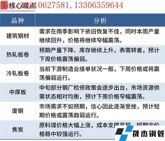 建筑厚壁無縫鋼管:6月10日,全國31個主要城市20mm三級抗震螺紋鋼均價4821元/噸,較上個交易日下跌17元/噸。短期來看,目前市場需求在雨季影響下依舊恢復不佳,同時本周產(chǎn)量繼續(xù)回升,高爐產(chǎn)能維持,供需仍然呈現(xiàn)雙弱格局。因此在下游需求難以回暖的狀態(tài)下,預計下周國內(nèi)建筑厚壁無縫鋼管價格或?qū)⒗^續(xù)窄幅震蕩為主。
