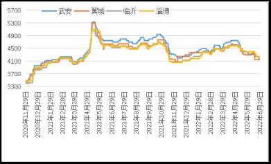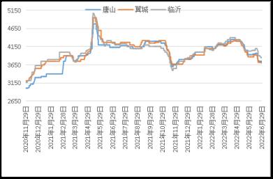 據云商平臺監(jiān)測數據顯示,截至6月30日,鑄造生鐵天津地區(qū)報價4250元,較月初跌150元;武安地區(qū)報價4150元,較月初跌220元;翼城地區(qū)報價4150元,較月初跌150元;上海地區(qū)報價4500元,較月初跌150元;臨沂地區(qū)報價4200元,較月初跌200元(詳見圖3)。