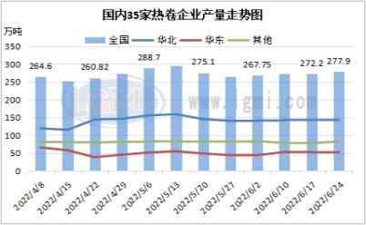 七月份熱卷市場(chǎng)重點(diǎn)關(guān)注無(wú)縫鋼管廠家減產(chǎn)落地以及需求端恢復(fù)情況。國(guó)內(nèi)政策面對(duì)于熱卷市場(chǎng)到來(lái)一定支撐,但進(jìn)入七月份受高溫以及梅雨天氣等影響,或?qū)⒃谝欢ǔ潭壬现萍s下游需求恢復(fù)力度。