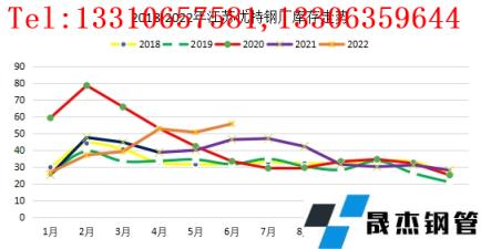 圖3:2018-2022年江蘇地區優特無縫鋼管廠家庫存走勢圖
