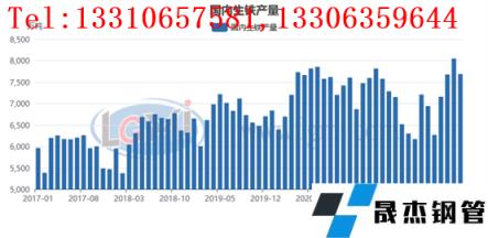 2022年6月份,由于淡季需求明顯不足,國內(nèi)厚壁鋼管市場價格大幅下挫,無縫鋼管廠家開始陷入大幅虧損,生產(chǎn)積極性明顯下降,厚壁無縫鋼管產(chǎn)量呈現(xiàn)高位回落態(tài)勢。據(jù)國家統(tǒng)計局?jǐn)?shù)據(jù)顯示,2022年6月份,我國粗鋼產(chǎn)量9073萬噸,同比下降3.3%(詳見圖1);生鐵產(chǎn)量7688萬噸,同比增長0.5%(詳見圖2);厚壁鋼管產(chǎn)量11842萬噸,同比下降2.3%(詳見圖3)。2022年1-6月,我國粗鋼產(chǎn)量52688萬噸,同比下降6.5%;生鐵產(chǎn)量43893萬噸,同比下降4.7%;厚壁鋼管產(chǎn)量66714萬噸,同比下降4.6%。