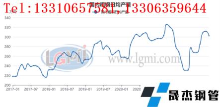 圖7 2017-2022年大中型厚壁無縫鋼管企業(yè)粗鋼旬產(chǎn)