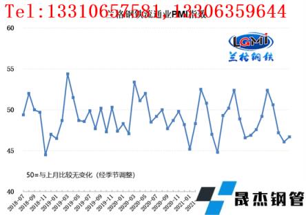 從先行指數來看,2022年7月份厚壁無縫鋼管流通業采購意愿指數為46.8%,較上月下降0.2個百分點,在收縮區間內繼續走弱;走勢判斷指數為46.7%,較上月上升1.5個百分點,在收縮區間內有所回升,反映樣本企業對后期市場保持謹慎相對樂觀的態度。