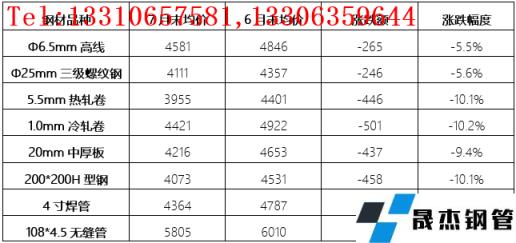 表1 10大城市8大厚壁鋼管品種價(jià)格漲跌情況表(單位:元/噸,%)