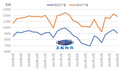 由于鋼企虧損幅度加大,企業(yè)檢修減產(chǎn)情況增多,月末雖受到虧損修復(fù),鋼企復(fù)產(chǎn)預(yù)期有所增加,但7月份厚壁無(wú)縫鋼管產(chǎn)量仍呈環(huán)比收縮的態(tài)勢(shì),同比或現(xiàn)首次回升。據(jù)研究中心估算,7月份全國(guó)粗鋼日產(chǎn)或?qū)⒒芈渲?85萬(wàn)噸左右的水平。
